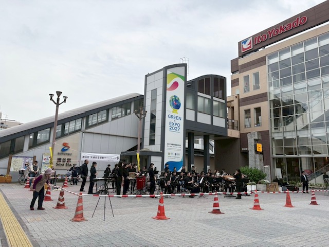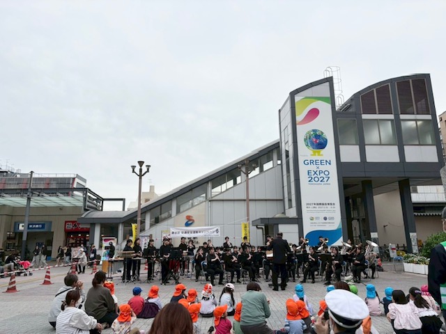 横浜隼人高等学校吹奏楽部によるコンサート、白バイ、パトカーの展示や体験乗車、交通安全啓発チラシや反射リストバンドなどの配布が行われ、新年度交通安全への呼びかけを実施しました。